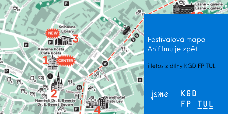 Již od roku 2020 jsme hrdým partnerem mezinárodního festivalu animovaných filmů Anifilm, který se každoročně koná v Liberci. Spolu se Studiem Horáček stojíme za unikátní festivalovou mapou, která návštěvníkům pomáhá orientovat se po městě a zároveň objevovat nová místa – ať už jde o projekční sály, zajímavé lokace nebo třeba podniky, kde si mohou odpočinout u kávy či oběda s přáteli.