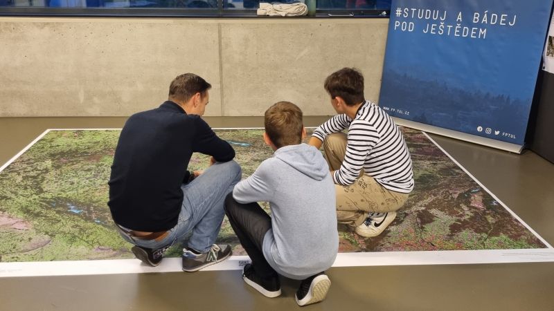 - Podlahová “šlapací” mapa Česka a Liberce: Na této obří mapě České republiky a Liberce si návštěvníci mohli doslova šlapat po svých domovech a zároveň se dozvědět, jak se vytvářejí data pomocí družicového průzkumu zemského povrchu. Tato aktivita byla oblíbená u všech generací.