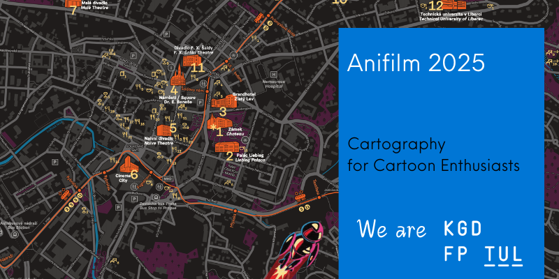 This year, our department team once again participated in the creation of the festival map for the International Festival of Animated Films Anifilm – for the sixth time already. The map served festival visitors as a practical guide to festival venues, screening halls, and relaxation areas.